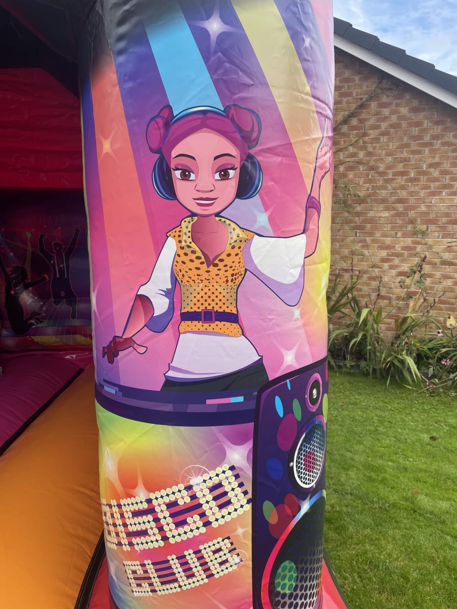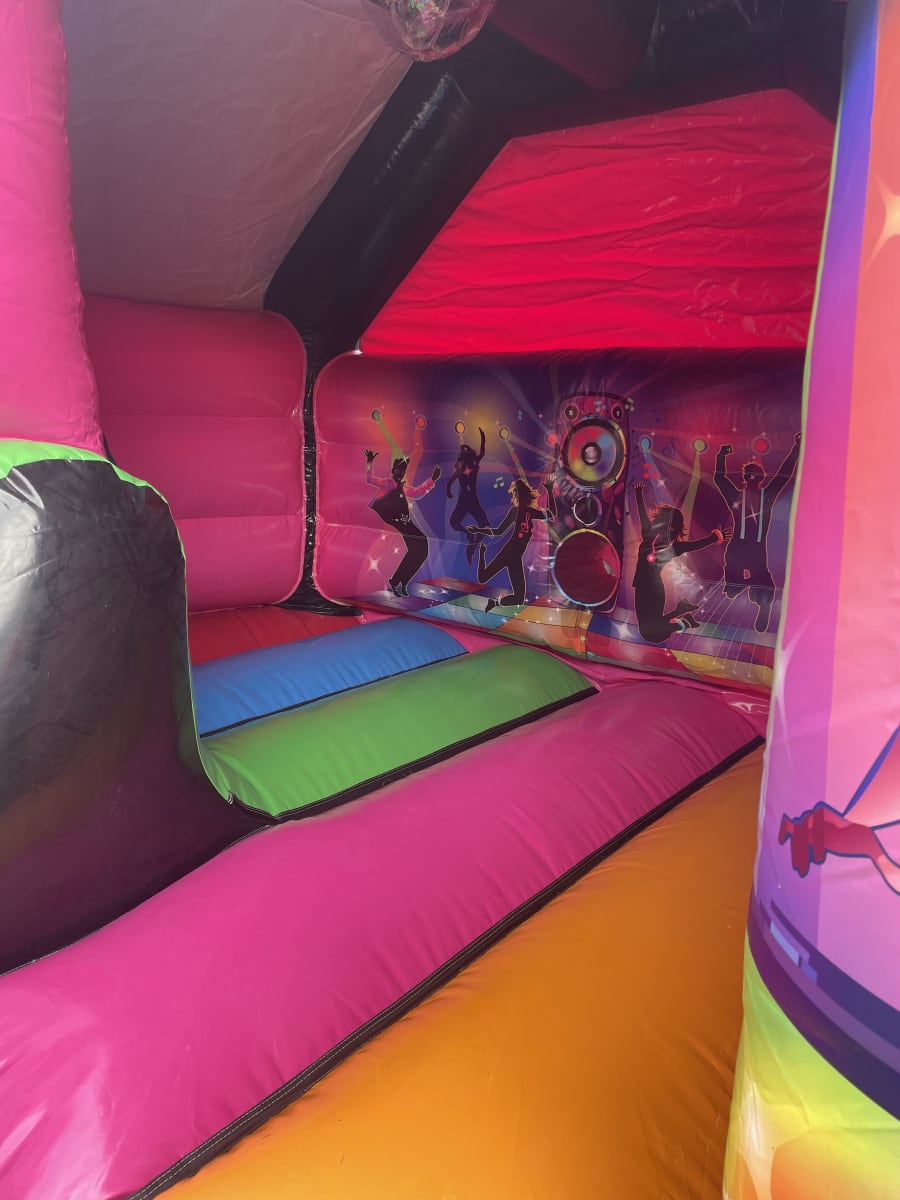 Get ready to groove and have a blast with our 15x12ft Disco Front Slide Combi! 🎉 Perfect for children's parties and events in Cheshire and Staffordshire, this vibrant inflatable features a built-in speaker system and dazzling disco lights that will keep the party going all night long. 🎶✨
